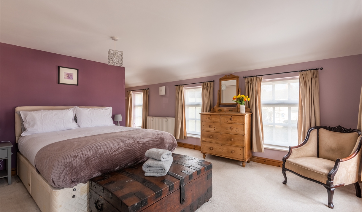 Guests can also enjoy the spacious and comfortable living room, with wood burning stove, or the bright and sunny garden room overlooking the patio. Upstairs, the large master bedroom offers views across Chepstow and the Wye Valley. The second bedroom can be configured as a double or twin-bed room depending on guest's requirements, whilst the cosy third bedroom has a double bed. Outside there is a good sized private cottage garden, which has an area of lawn, and is fenced and secure, making it suitable for visitors with dogs.