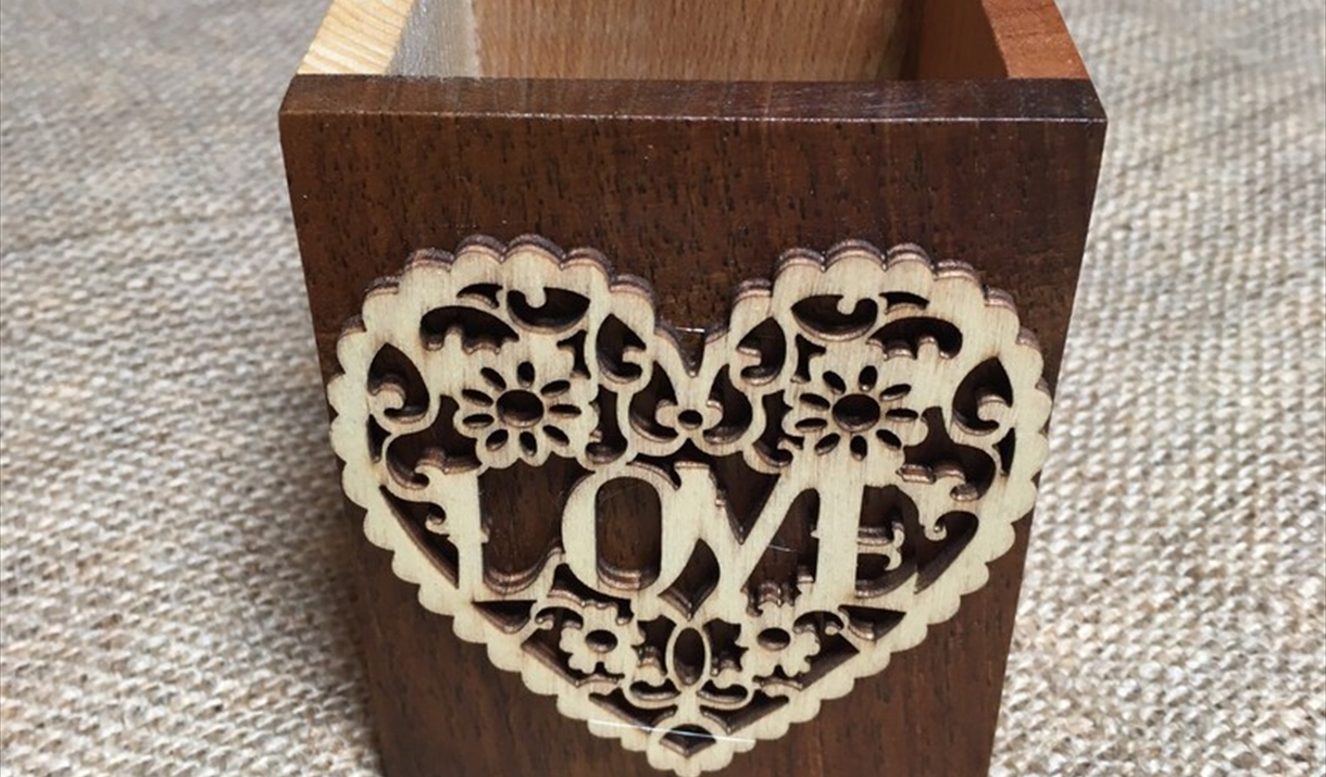 Byrgwm Products are produced by Mike Bloomfield. He produces a wide range of high quality woodturned items such as boxes with pyrography, Welsh and English named woods, Welsh slate/wood coasters, bowls, clocks, calculators, cheeseboards and also foot stools in a variety of rich tapestry colours. Mike's work is inspired by designs in Welsh Historic buildings and Celtic designs.