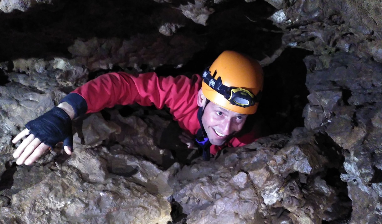Explore hidden depths on a caving adventure session with Borderlands Outdoor. Our experienced instructor will take you on a journey through subterranean passages deep beneath the mountainside. This is a crawling, squeezing physical activity for adventurous explorers!