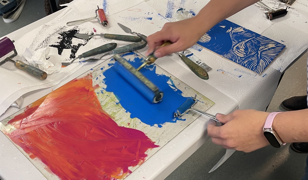 A friendly, welcoming and fun small group workshop. Learn how to design, carve and print a beautiful lino print to take home. All materials and tea and coffee included.