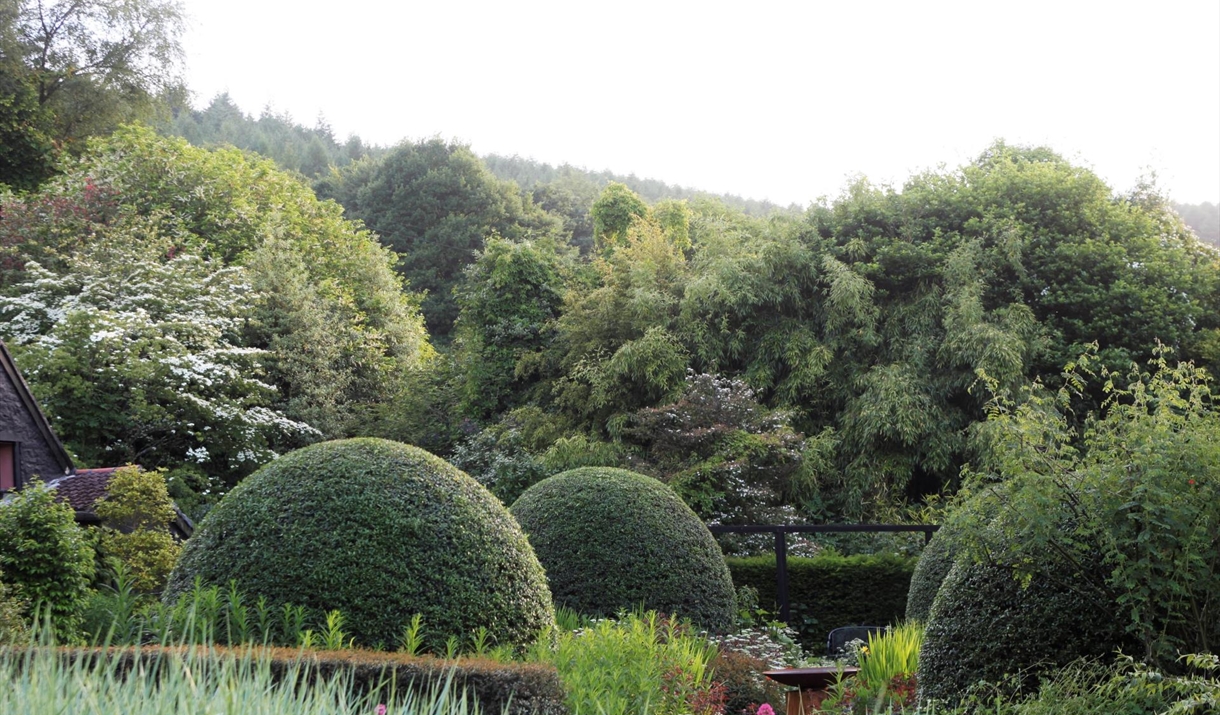 The garden is set in the wonderful countryside of the Welsh border above Tintern. There are two acres of ornamental garden and two acres of woodland. A notable addition to the garden is the dramatic reflecting pool.